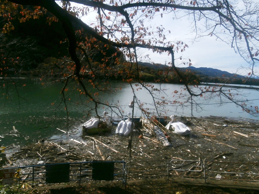 台風19号が過ぎ去った1週間後に城山ダムに行ったときには、津久井湖面には山から流れてきた木々やごみでびっしりと埋め尽くされていましたが、1か月も経つとその様子は改善されて、湖面が大分綺麗になっていました。