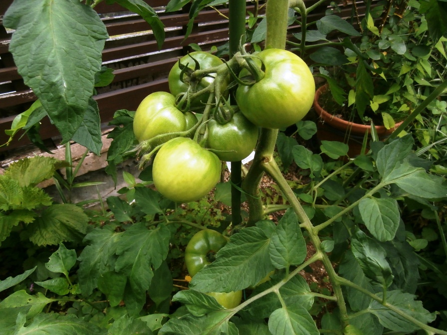 5月初めに買ってきた中玉トマトの苗の成長が著しく、もうすぐ収穫できそうです。