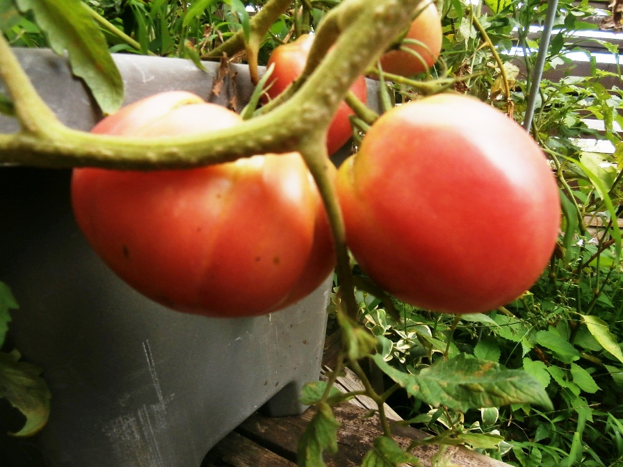 ところで、トマトの収穫は7月末頃が最後かと思っていたら、中玉サイズのものが3-4個残っており、本日収穫しました。こんなに頑張ってくれるとは…。トマトの苗木1本から30数個も収穫を楽しむことができるなんて予想もしていなかったのですが来年もチャレンジしたいですね。